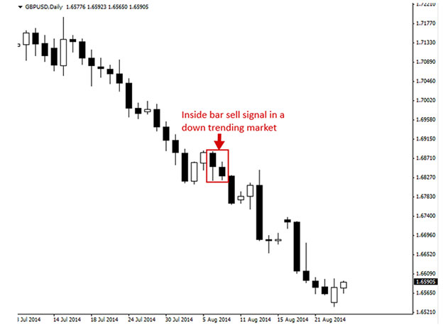 đang trong trend down, vì vậy mẫu hình inside bar được xem là tín hiệu sell.