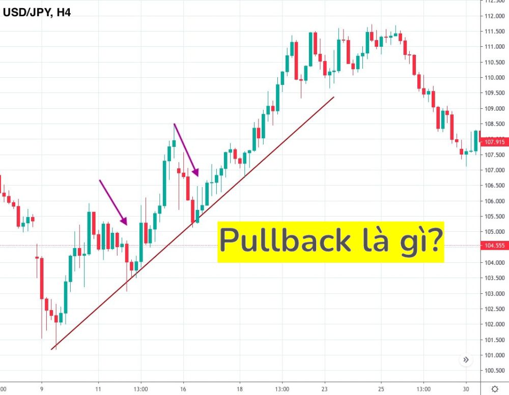 Pullback hay còn gọi với cái tên nến giá chuyển động phi xu hướng. Pullback là một thuật ngữ thể hiện hoạt động giá đi ngược lại với xu hướng chính trong khoảng thời gian ngắn. Giá thoái lui Pullback phá vỡ các vùng kháng cự và hỗ trợ trong ngắn hạn.